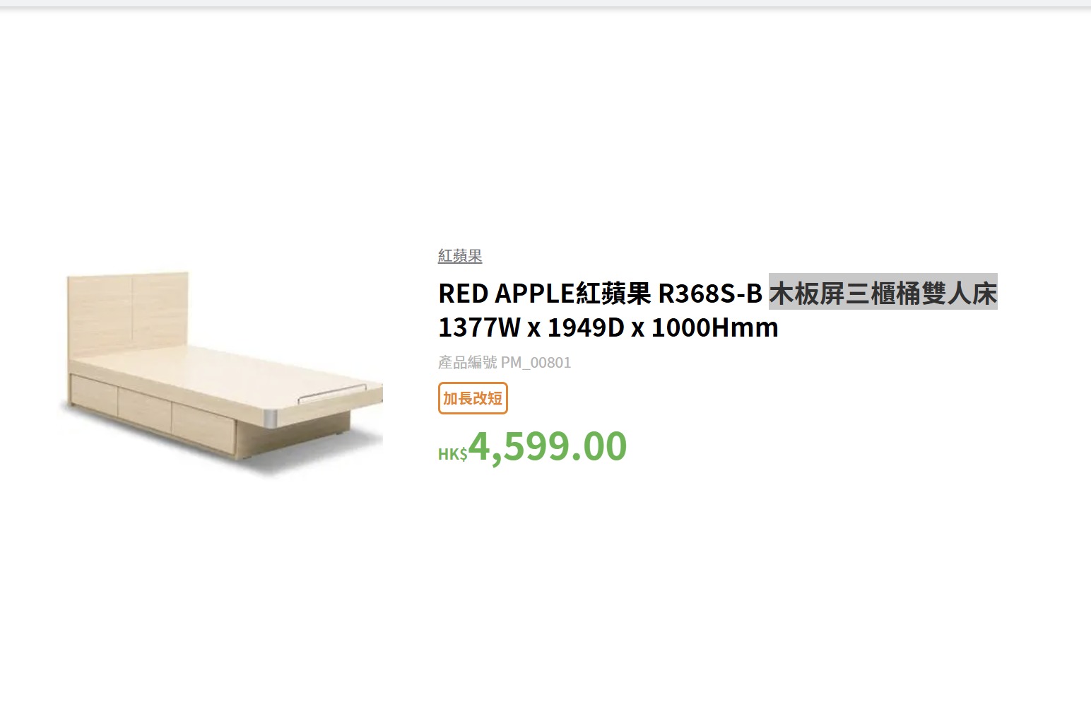 紅蘋果4尺半床 198*138*92cm (床褥尺寸190*135cm) # 2511037